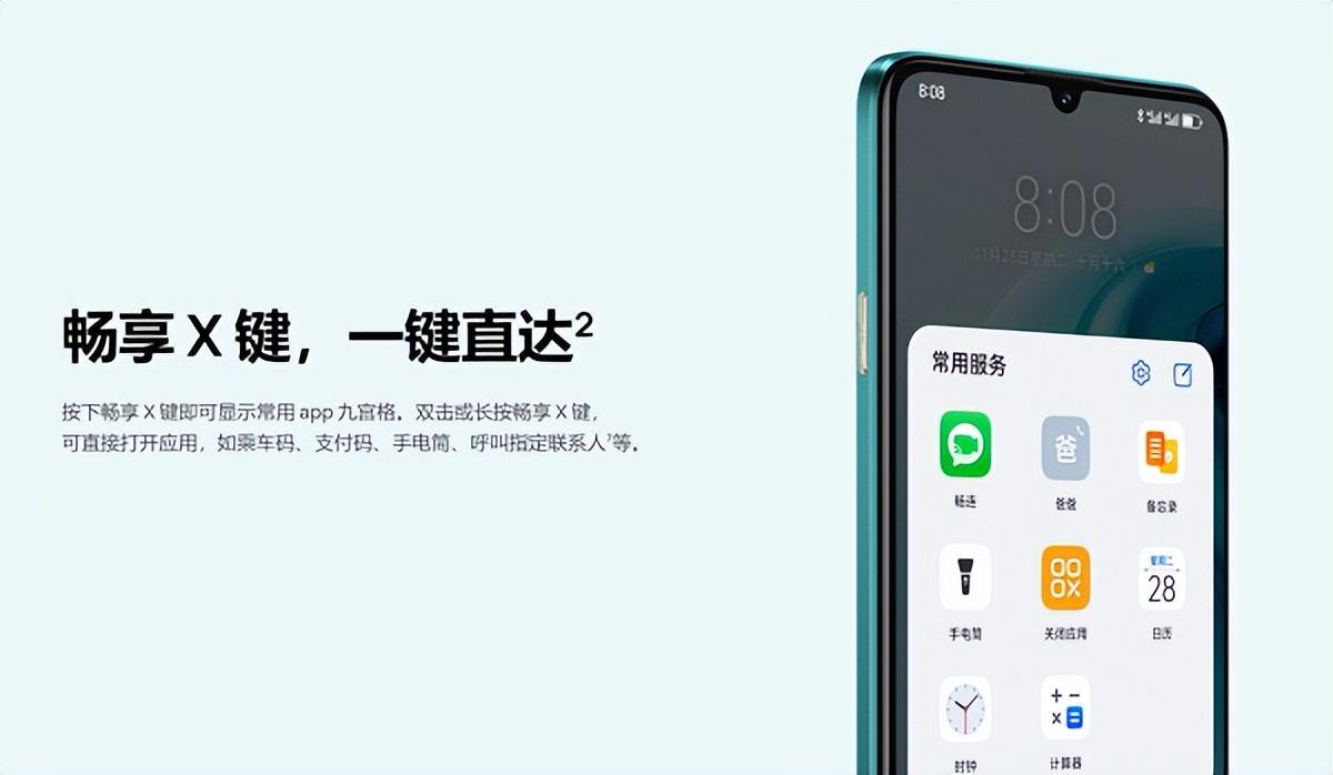 华为畅享70的畅享X键也是便捷体验的一大利器,只需轻轻一按,即可出现常用APP九宫格,用户可以根据个人日常使用频率,自定义添加天气、手电筒等常用核心App。每次出门前了解天气情况,及时增添衣物;晚上起夜可快速打开灯光,漆黑环境下照亮前路。面对复杂的生活场景,用户还可以直接将X键设置为两个核心应用,双击和长按即可直接打开调用,出门乘公交买菜,可一键直达乘车码、付款码,快捷支付;紧急情况下,也可通过X键快速呼叫指定联系人,高效省时。即使是不熟悉智能手机的中老年人,畅享X键也能给生活带来更多的便利与安心。