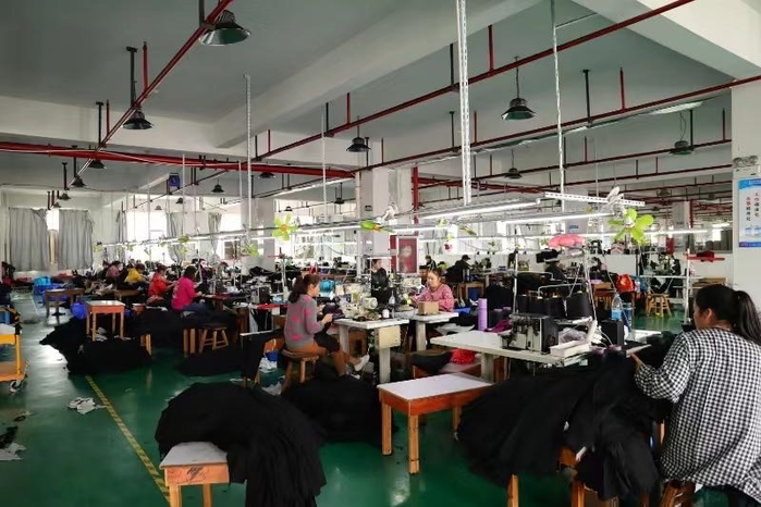 【图说:1688严选组织的军大衣加工厂,机械化生产线全线开动。】
