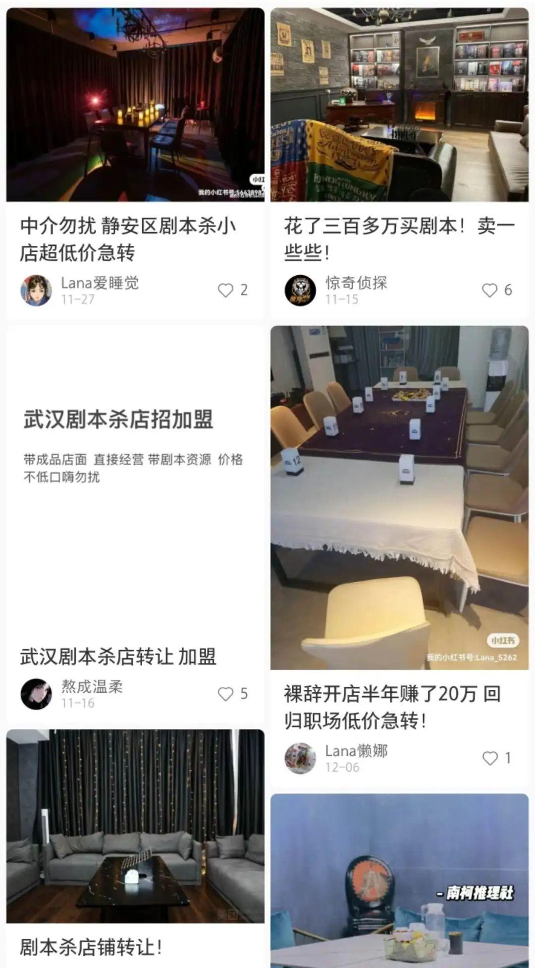 *小红书上转让剧本杀店铺的帖子