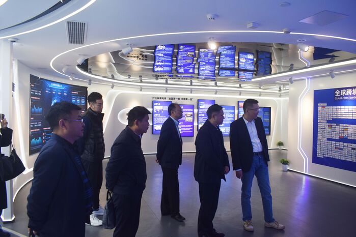在全球跨境电商知识服务中心展厅,讲解员详细介绍了目前跨境电商行业发展形势、中国跨境电商的发展历程,分享了杭州跨境电商综试区成立八年以来的创新政策、模式。考察组一行对杭州跨境电商在品牌培育、主体培育、人才培养、模式创新、金融支持等方面产生了浓厚的兴趣,双方就此进行了深入座谈交流。