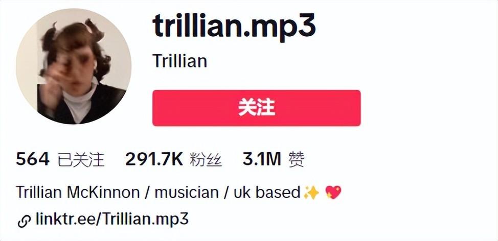 @trillian.mp3是个音乐博主,在TikTok圈粉291.7K,收获了310万的点赞。