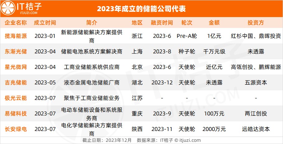 IT 桔子数据显示,2023 年涌现了一批储能新玩家。尽管均处于储能赛道,但多家新公司聚焦业务并不相同。