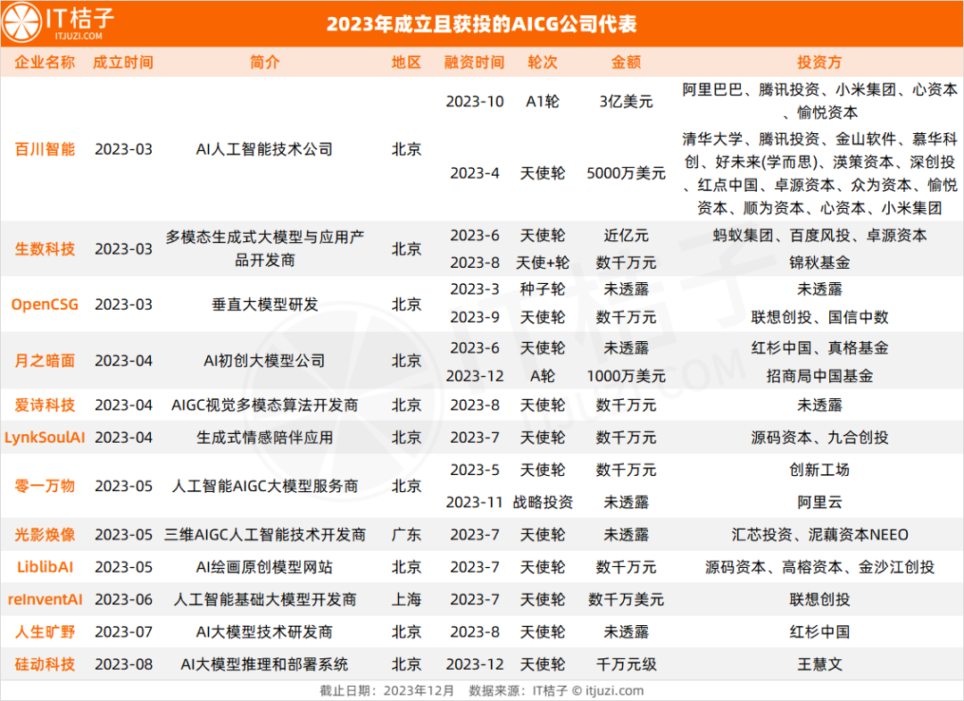 IT 桔子数据显示,2023 年成立且获得融资的公司数量达 30 家,融资规模近 40 亿元。