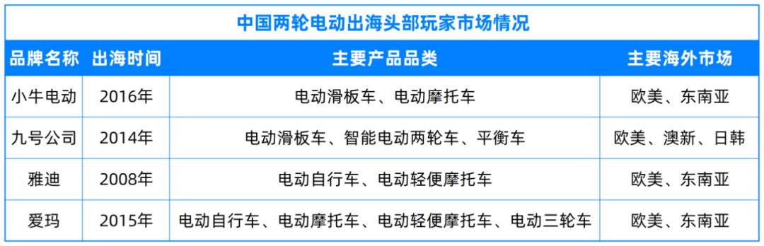 如果把目光放到整个两轮电动行业,市场也正进入一个波动调整期:部分地区受政策影响大,市场需求萎缩;一些经销商面临资金断裂;头部玩家集中度高,竞争趋向于同质化;本土老品牌根深蒂固,中国企业难以把国内的定位、经验复制到海外等。
