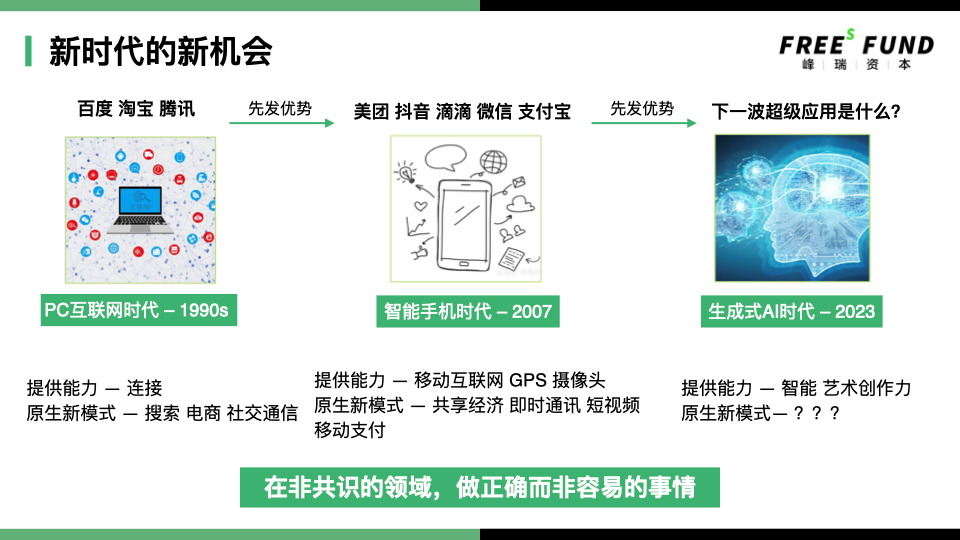 在真正有价值的AI应用生态繁荣之前,押注大模型这样的核心技术源头及“卖铁锹”公司是有一定道理的。但目前正在蓬勃发展中的AI应用,同样是价值创造的源泉和我们要追求的星辰大海。