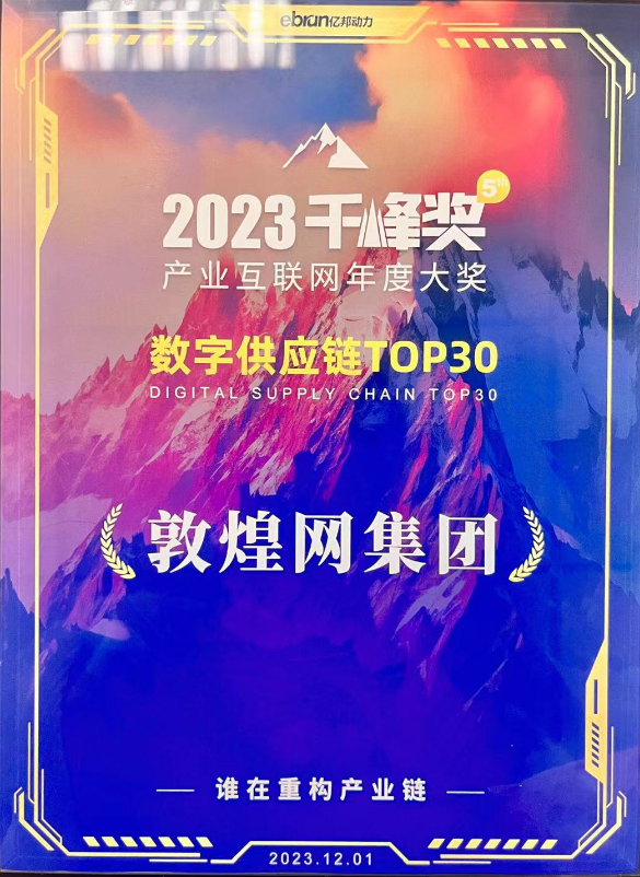 敦煌网集团凭借在数字供应链服务方面的卓越表现,荣获电商头部媒体亿邦动力颁发的“千峰奖·数字供应链TOP30”奖项。这一荣誉是对敦煌网集团在数字供应链领域的领先地位和卓越贡献的认可。