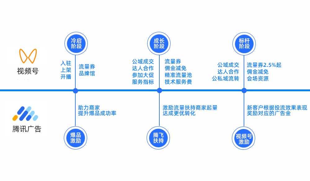 后半年,微信支付的团队参与到视频号的建设,除了以往的类目、达人和商家运营,也在围绕大促等做一些活动。2024年腾讯会对重点商家和达人配备全职运营团队全程陪跑,采用视频号和腾讯广告双线对接和运营的方式,前者负责入驻、上架、开播、撮合、大促和流量券发放等基础运营,后者则主要帮助商家做解决方案,但过程中有交叉。