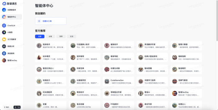 OpenAI曾推GPTs,前几天上线了GPT store,被认为是下一代APP store。现在智谱也正式上线了他们的GLMs和智能体中心。