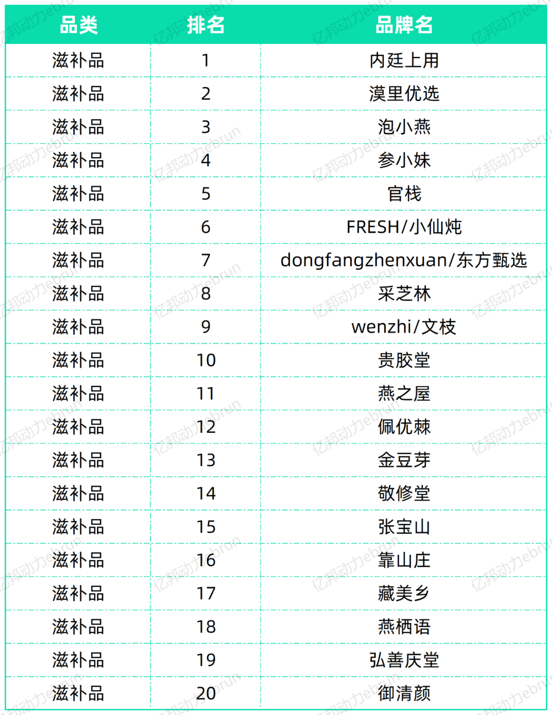 在2023年双十一,抖音的滋补榜单上也出现了一个素未谋面的品牌,虽然还在top10之外,top20兜底。但是增速达2000%。虽经过与品牌方核实,这是因为“我们去年没怎么做双十一。”