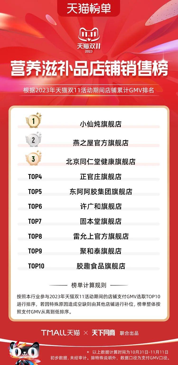 在2023沉默的双十一中,京东京造营养保健类产品成交额增长超280%。作为滋补品中的燕窝品牌,小仙炖居于2023天猫双十一健康店铺销售榜单首位。