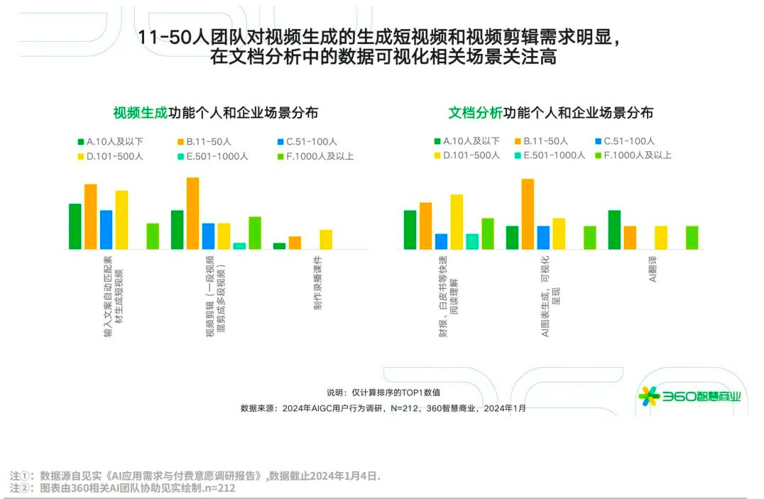 如上图所示,11-50人、101-500人规模的企业对视频生成需求最高。