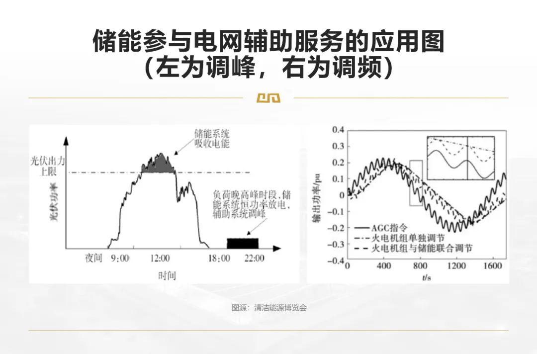 在电网侧,为电力系统提供调峰、调频等辅助服务。例如调频,频率的变化会对发电及用电设备的安全高效运行及寿命产生影响,储能(特别是电化学储能)调频速度快,可灵活地在充放电状态之间转换。