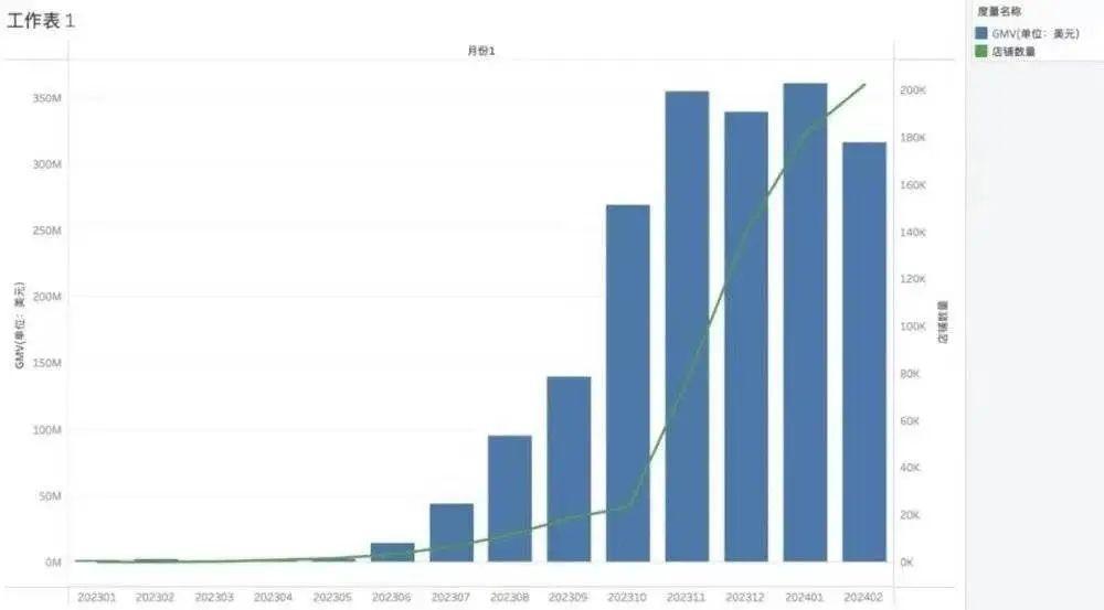 TikTok shop美区月度GMV及店铺数量变化