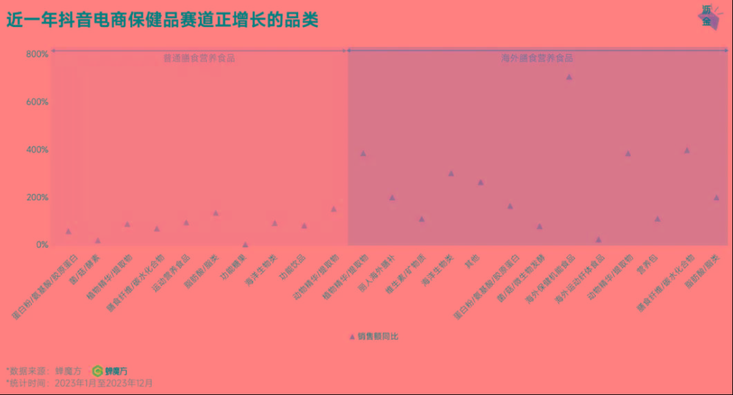 近一年淘宝、天猫,抖音电商保健品赛道的正增长品类