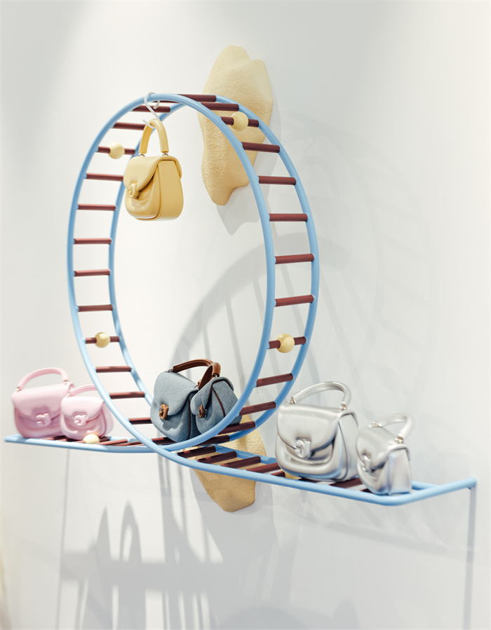 「日久童心」是一种生活状态 、处事心态,童心是 30 岁也能快乐地荡秋千,是对世界 依然充满好奇的精神,永远对可爱治愈的事物保有热情 。本季 Ontimeshow 上海时装 周,古良吉吉「日久童心游乐园」将最令人舒适放松的色彩与最能调动脑内多巴胺的过山车装置结合,在静与动的线条起伏中,释放艺术的治愈力量,让人不自觉地感到快乐 。