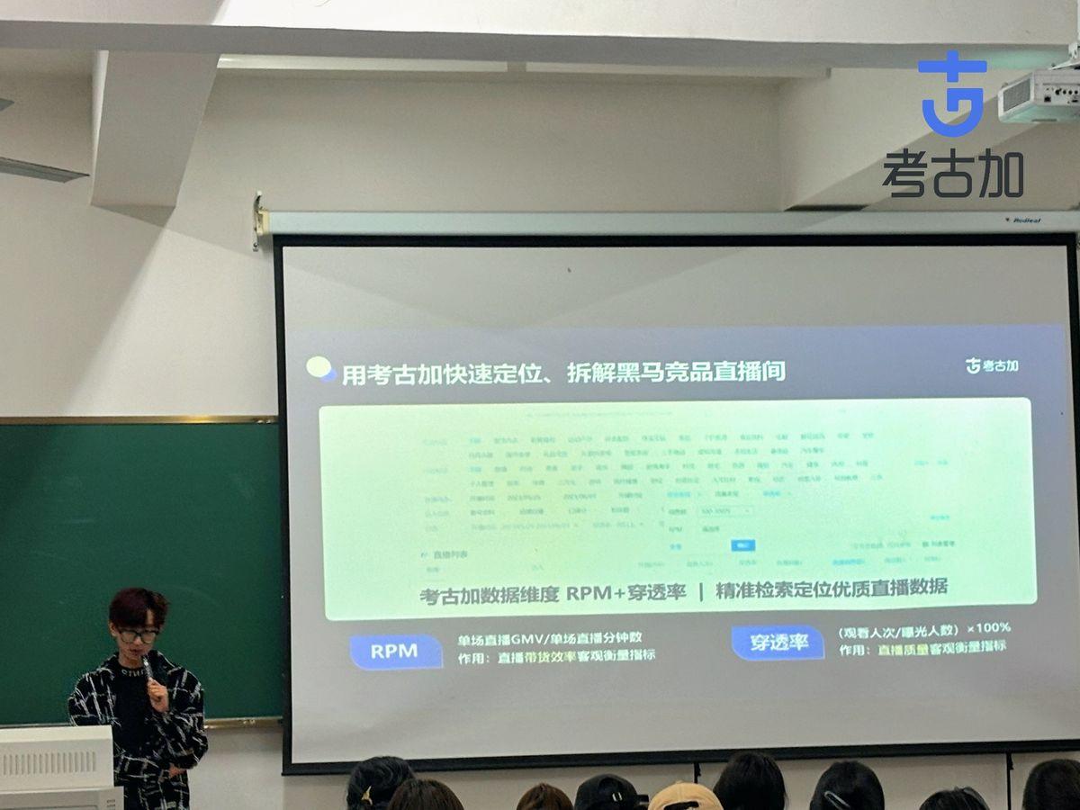 在讲座的最后,胡老师向学生们介绍了考古加数据软件的功能和优势。考古加数据软件是一款专为电商人设计的数据分析工具,它可以帮助用户筛选标签、分析市场趋势、优化营销策略,从而提升电商运营效率和销售业绩。