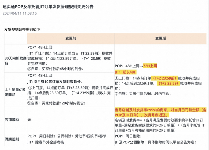 3、假期考核调整:POP周日发货剔除;JIT及POP公假具体剔除时间则以后续平台公告为准。