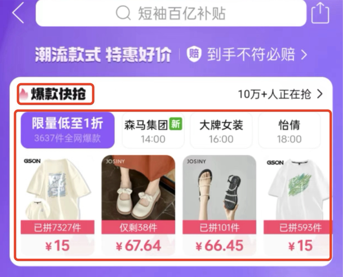亿邦了解到,目前潮流好价频道共分为“潮流快抢”、“单品直降”以及“品牌日/品类日”三个核心玩法。