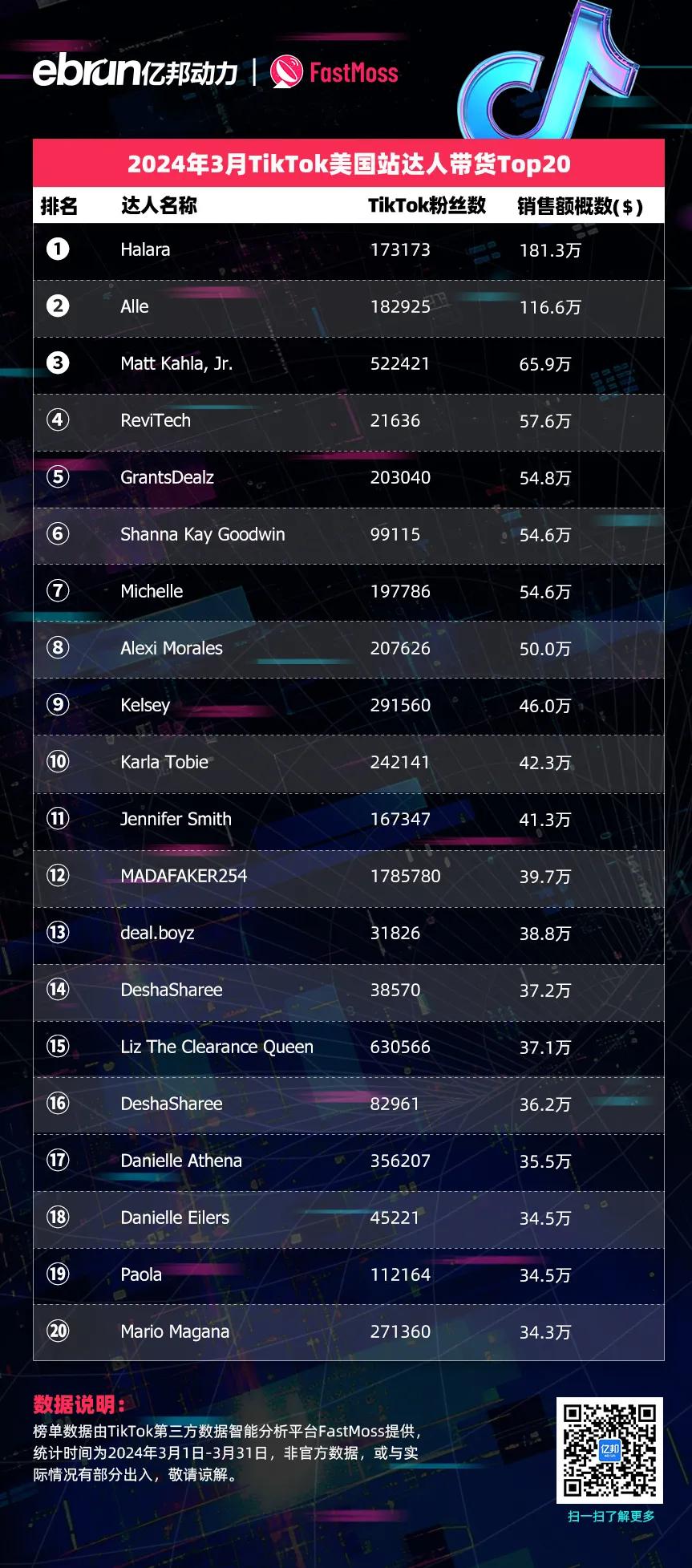 榜单数据由TikTok第三方数据智能分析平台FastMoss提供,统计时间为2024年3月1日-3月31日,非官方数据,或与实际情况有部分出入,敬请谅解。