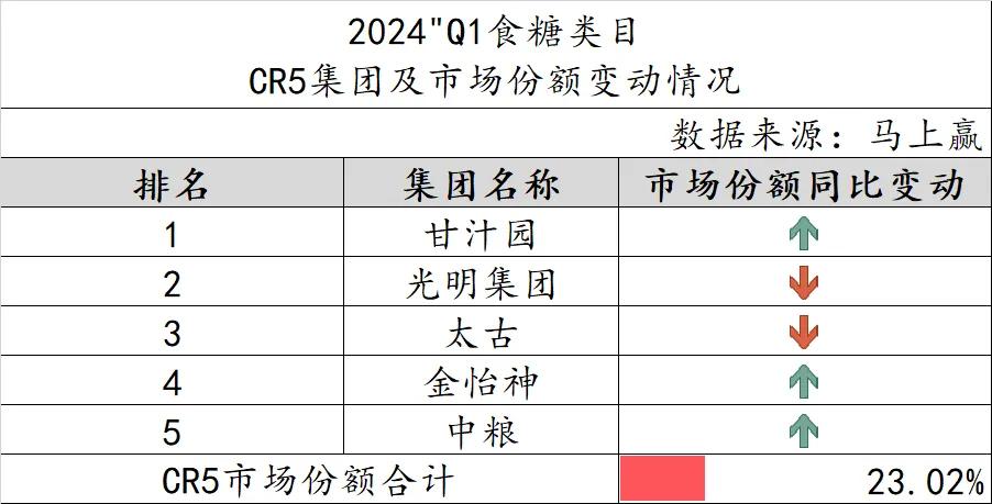 从CR5市场份额总和来看,食糖类目仅有23.02%,与一众调味品重点类目相差较大,尤其是与蚝油类目对比鲜明。可见,在食糖类目中集中度并不高。