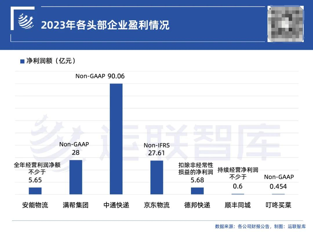 并且,对于那些早已实现盈利的企业,大家利润增长的速度要远超于营收增长的速度。比如,满帮2023年营收为84.4亿元,同比增长25.3%;非美国会计准则下实现净利润约28.0亿元,同比增长100.4%;中通快递2023年营收为384.2亿元,同比增长8.6%,调整后净利润90.06亿元,同比增长32.3%。