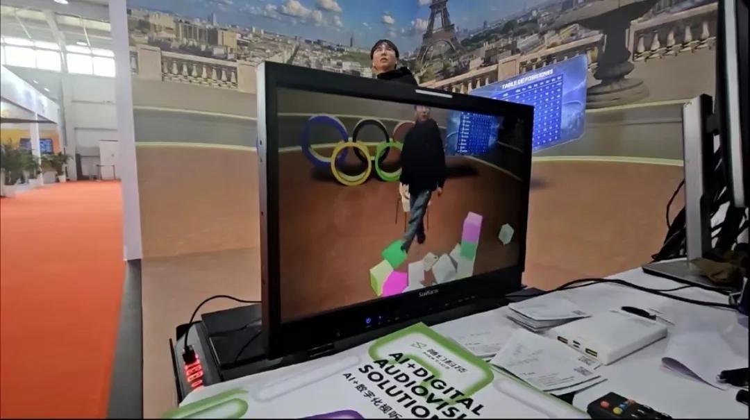 本次CCBN,随幻科技展出了自研的AI数字互动XR解决方案,并特地打造了一个巴黎空中花园概念的奥运会演播厅,观众步入LED屏区域,在融合画面中就走进了虚拟演播厅之中,结合随幻独家的深度与跟踪算法,人物可以在虚拟演播厅里自由穿梭走动、和各种虚拟动画和元素进行实时的交互,达成最栩栩如生的虚实互动效果。不少来自广电融媒行业的专业观众在体验后表示,这一技术的融入将会给广电媒体和各类节目的制作带来更高的效率和更具创意性和灵活性的玩法。
