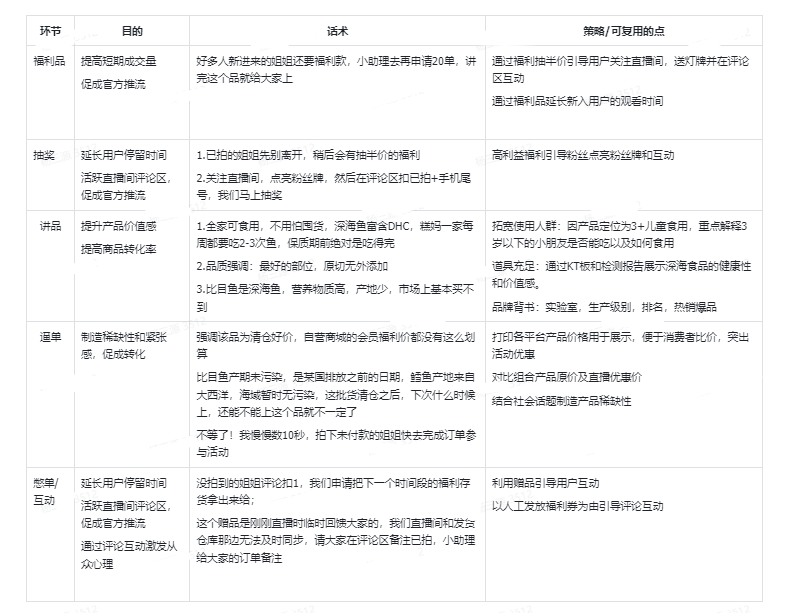4、参考李佳琦直播间的模式,在直播讲品循环一轮之后的非高峰时间段增加10分钟互动来放缓直播节奏,比如主播分享跟播品相关的带娃趣事、开展每周科普小课堂(1小时)、展示辅食制作或零售吃法、涉及化学品类的可以开展趣味实验。
