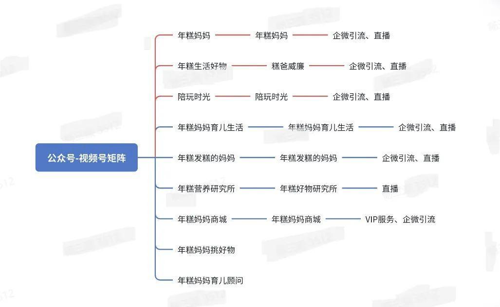 ①视频号矩阵通过不同主题的短视频内容产出吸引不同兴趣点的公域用户关注,增加IP曝光度,为直播间储蓄流量池。