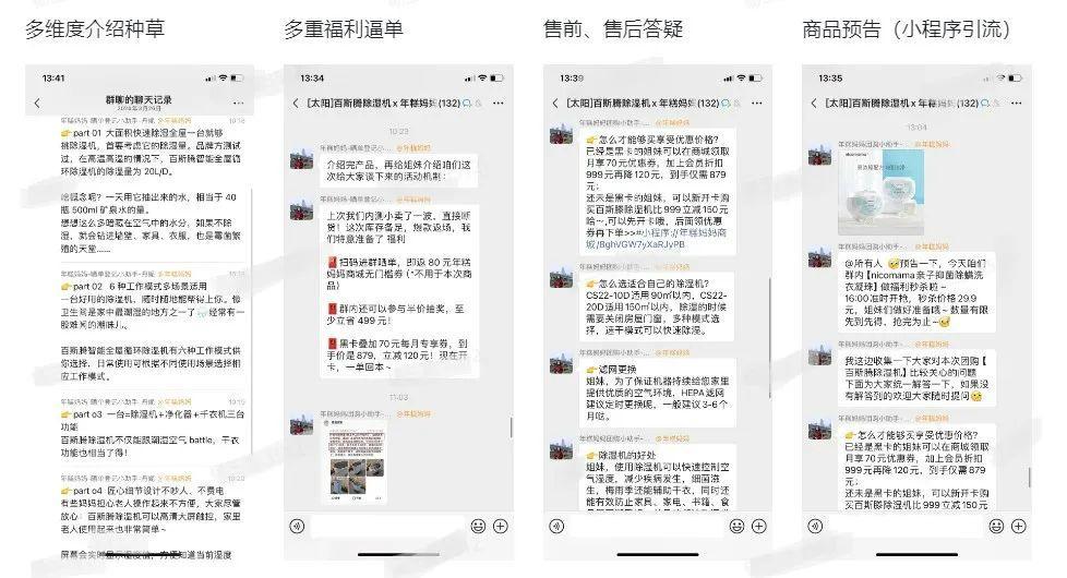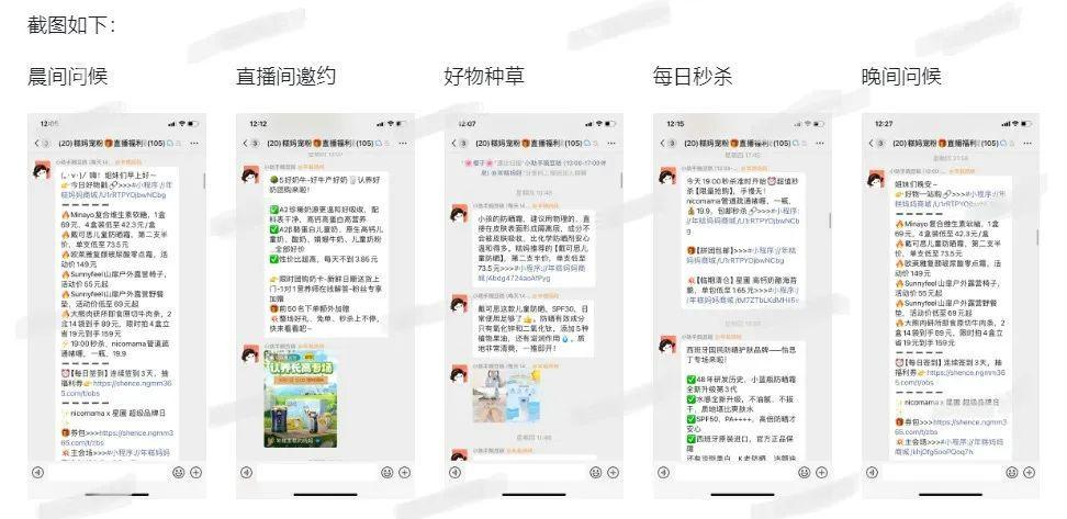 3、社群与企微运营的主要目的为日常促销和直播间引流,这两个板块的运营内容单一,促销风格明显,忽视宝妈们的圈层社交属性,未开展用户精细化运营,容易被用户收入群折叠或屏蔽朋友圈,消耗公域内容端培养的用户好感和信任。