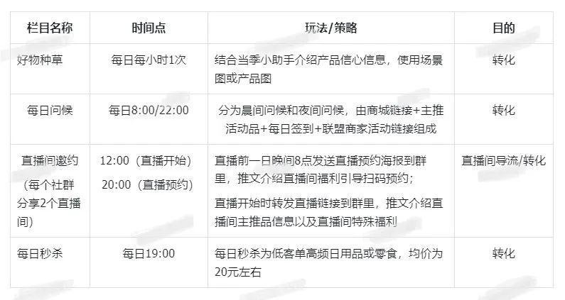 ①直播福利群的主要运营动作为高频次产品种草、福利宣发和直播引流渠道,主要售卖高频消费、低客单、低认知的产品,运营方式是重促销,轻互动。