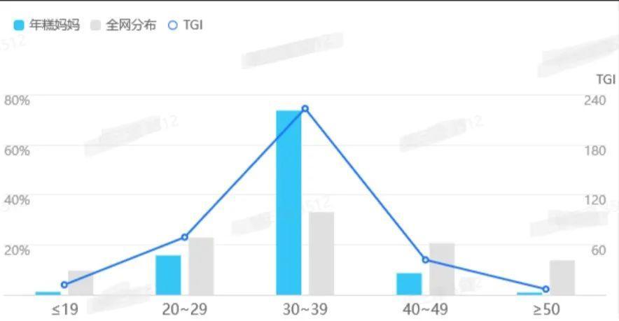 女性用户占比较多,这些女性多为家庭购物的决策者,不仅购买育儿用品,还负责采购家庭日用品、食材及服饰。值得关注的是,随着家庭式育儿观念普及,“年糕妈妈“男性用户群增长明显。(参考2021年"年糕妈妈“相关报告中男性用户占比近2%)