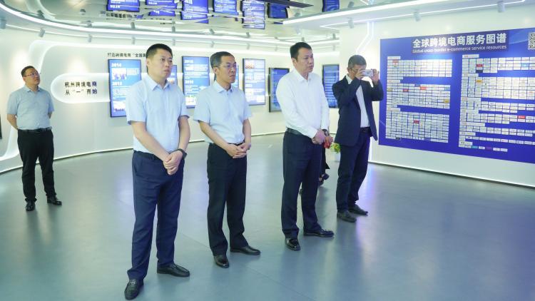 5月10日,绥化市政府副市长吕英斌一行在杭考察对外贸易、跨境电商、通关便利化、自贸试验区建设等方面情况,参观全球跨境电商知识服务中心。杭州市商务局跨境电商综试处处长陈健、亿邦动力华东区总经理于倩进行接待。讲解员介绍了跨境电商行业发展形势、中国跨境电商的发展历程,分享了杭州跨境电商综试区的创新经验。