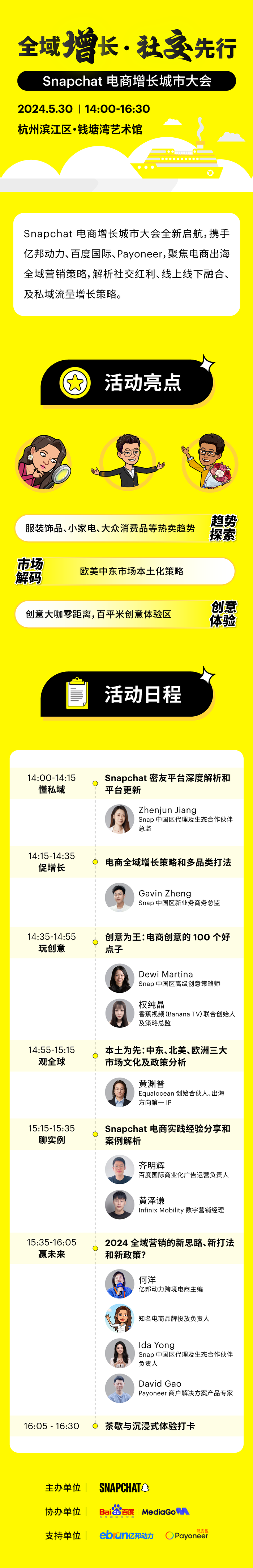 五、报名开启:全域增长,社交先行|Snapchat 电商增长大会