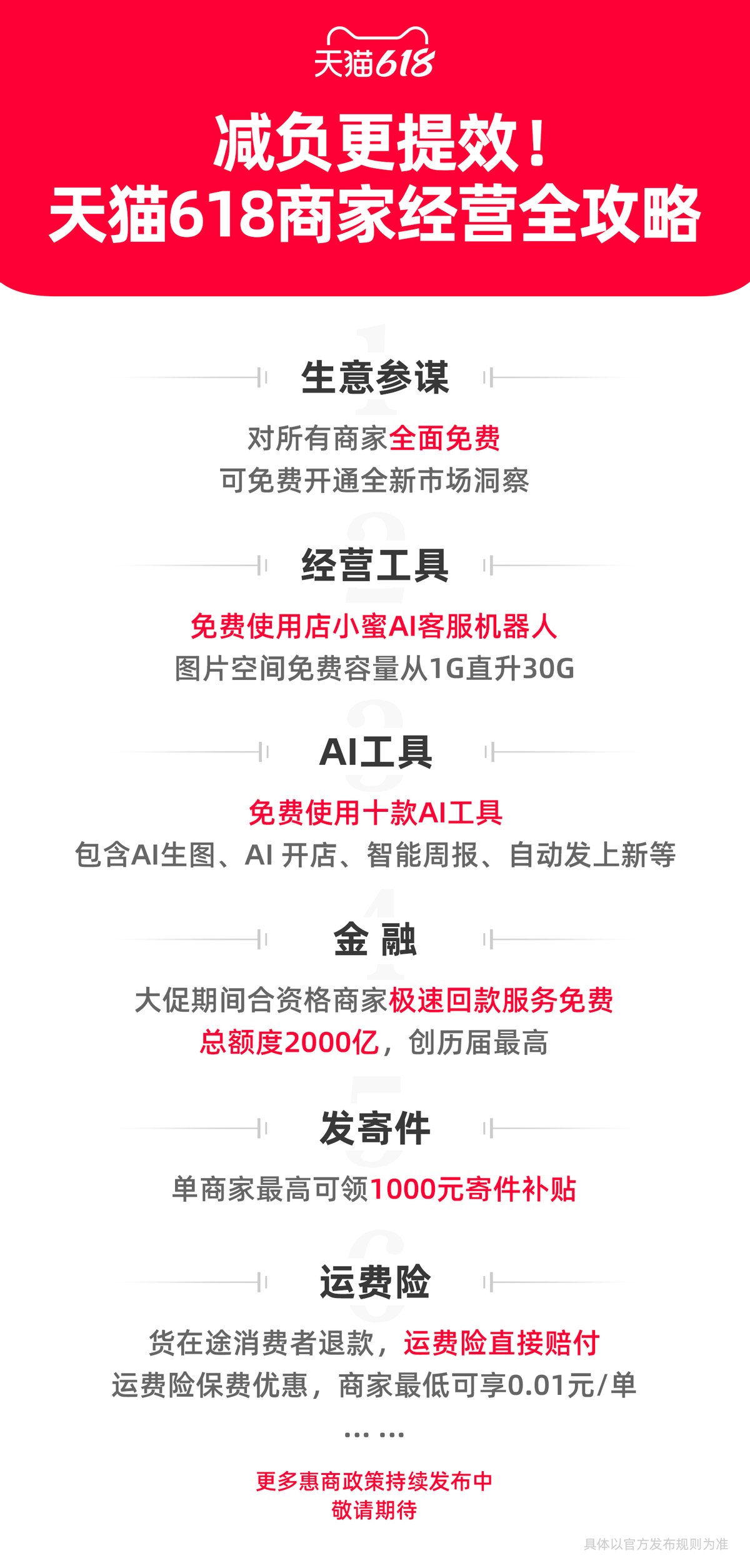 发货即回款、运费险优惠、信用贷利率优惠…今年天猫618再为商家推出一大波重磅福利!