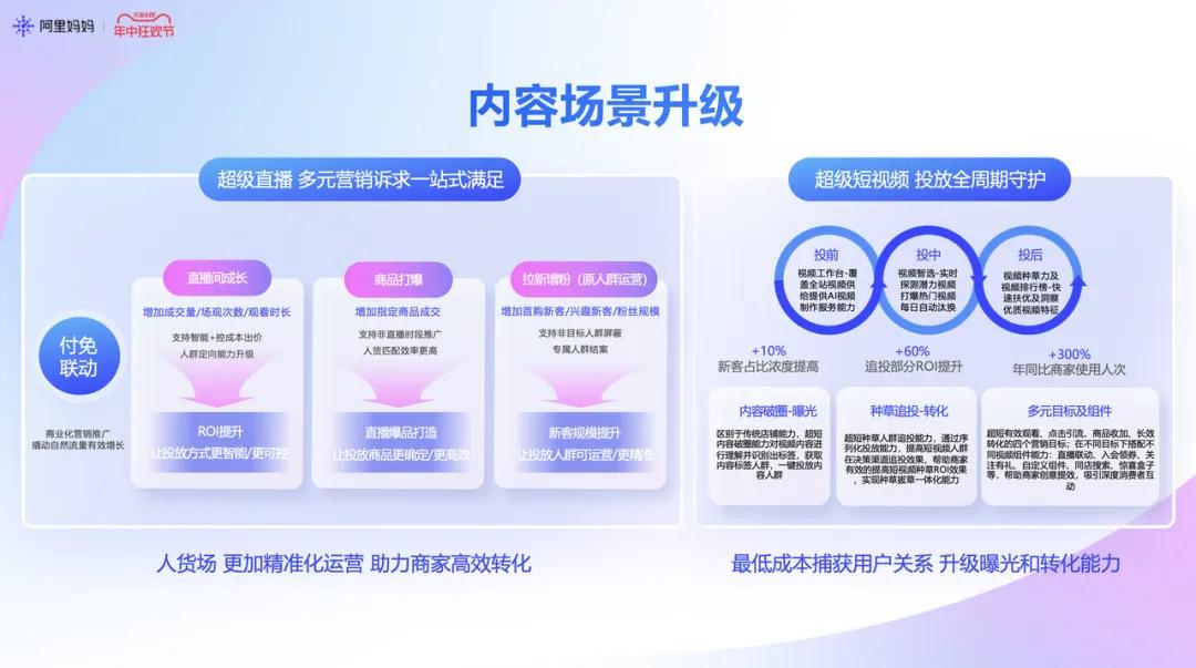 · 全场景精准提效,人、词、内容、货全场景提效。
