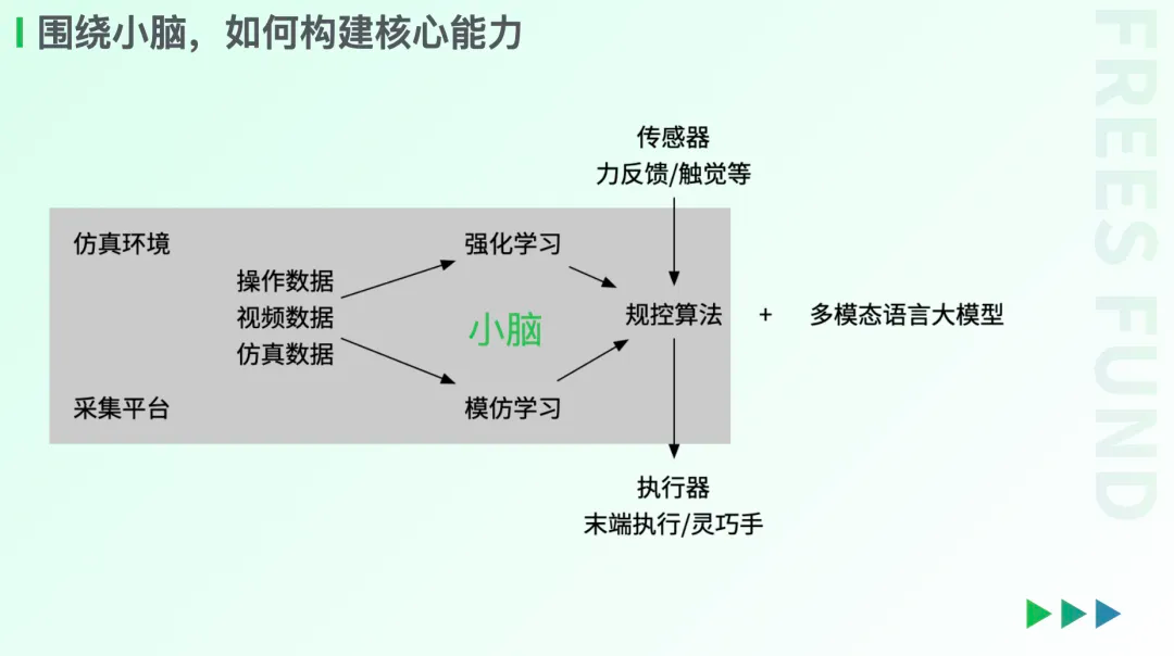 所以如今最核心的瓶颈在“小脑”,它既是数学优化与数据驱动的交叉点,又是软件和硬件技术迭代的交叉点,更是虚拟与物理实体的交叉点。这么一来,“小脑”就成为最难的地方,同时,也是最有机会之处。