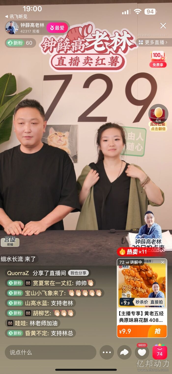 【亿邦原创】“林总加油”、“支持老林”、“钟薛高加油”、“有责任有担当是条汉子”,在评论区的一片鼓励声中,钟薛高创始人林盛准时在今晚7点出现在了淘宝直播间,开启了自己的直播首秀。