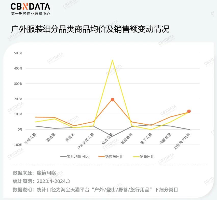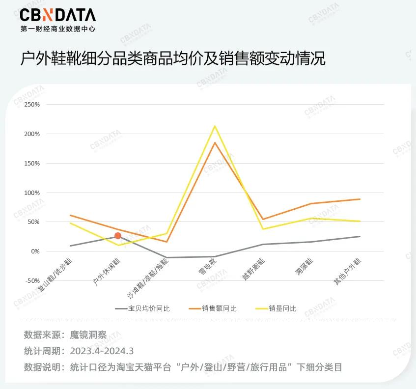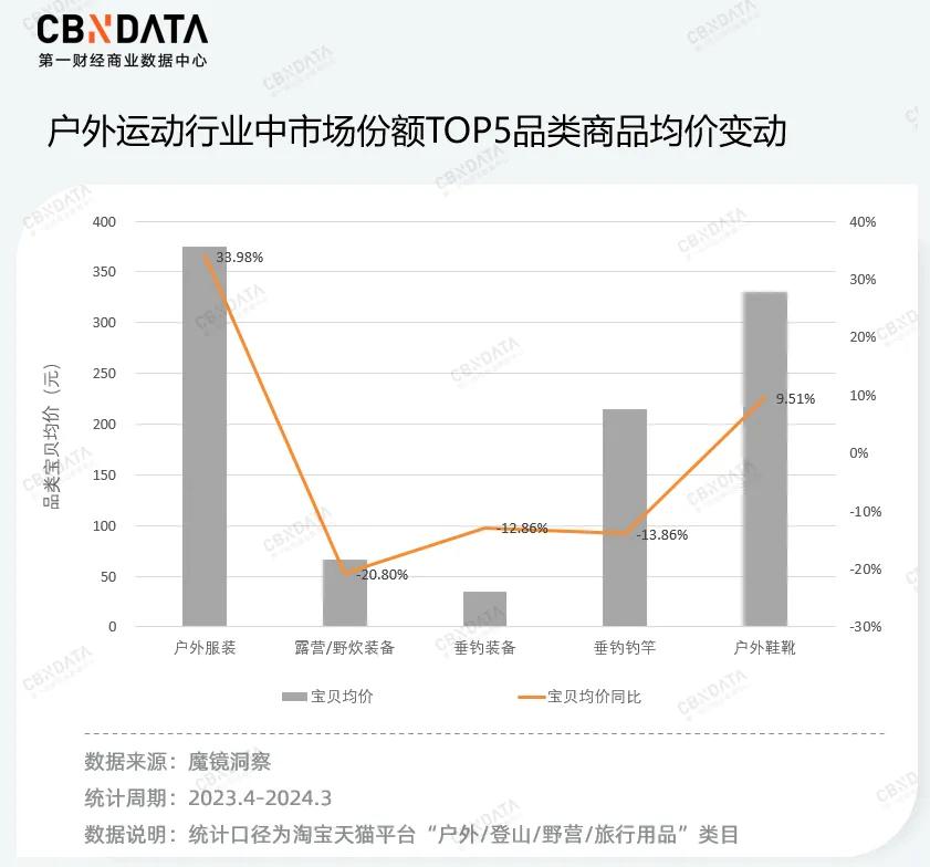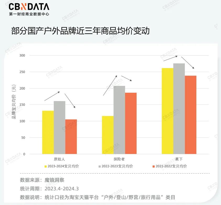 此外,随着户外经济的持续爆发,消费者对产品的功能和质量产生了进阶需求,这种对品质的渴望也体现在中高端商品的热销上。