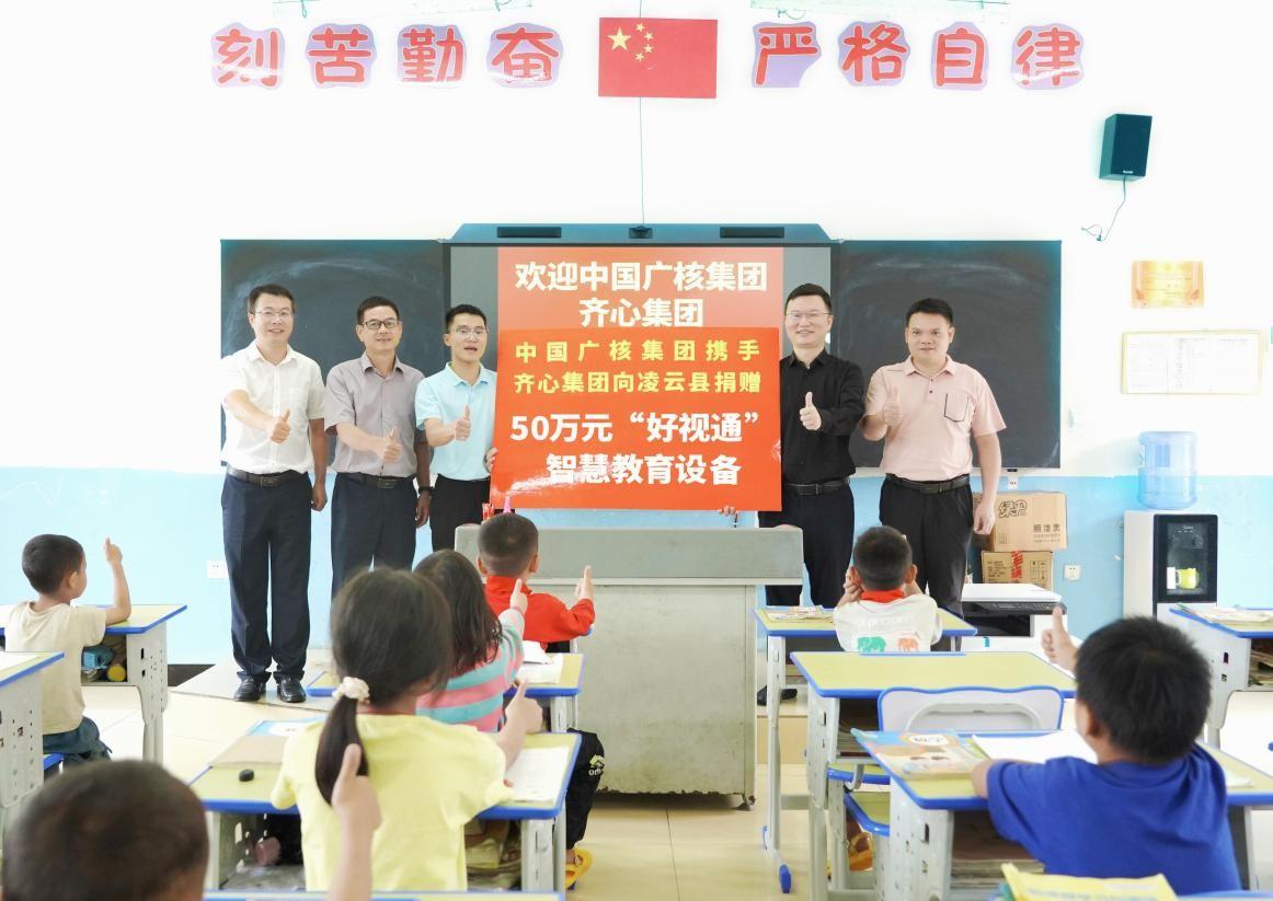 6月12日至14日,广西壮族自治区凌云县、乐业县迎来了一场智慧课堂的教学升级——“谐里小学、览金小学一体机捐赠仪式”顺利举行。此次活动由中国广核集团有限公司(下文简称“中广核”)发起,并携手齐心集团向当地三所小学捐赠信息化教学设备,用于升级当地教育基础设施,提升教育信息化水平,促进城乡优质教学资源共建共享,推动教育公平发展,助力广西乡村振兴。