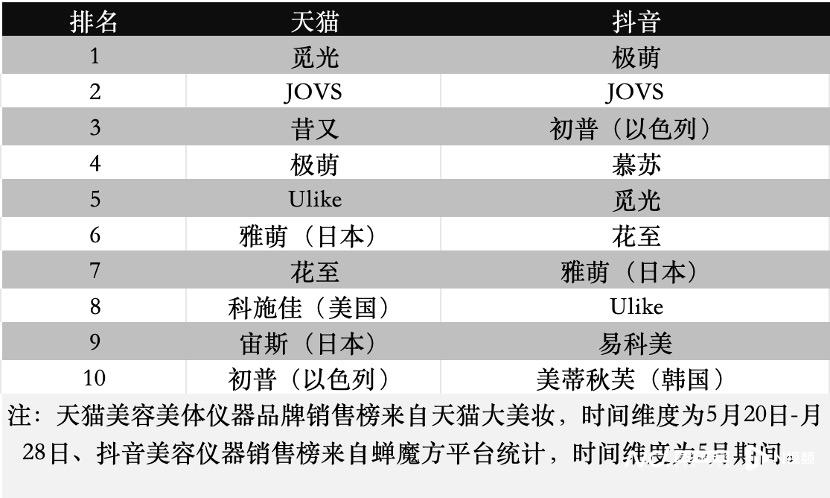 自新规之后,家用美容仪品牌在“洗牌”中求生机,走向高端化、技术化、精细化。射频类美容仪纳入“械”字号监管后的首个618大促,热销榜被LED光疗及微电流技术为主的美容仪产品填补,觅光、JOVS骄予时、极萌等国产品牌位列榜首,其中,JOVS骄予时取得多平台 TOP2的排名,其抗衰线超膜刀美容仪荣登天猫美容仪器双料冠军。