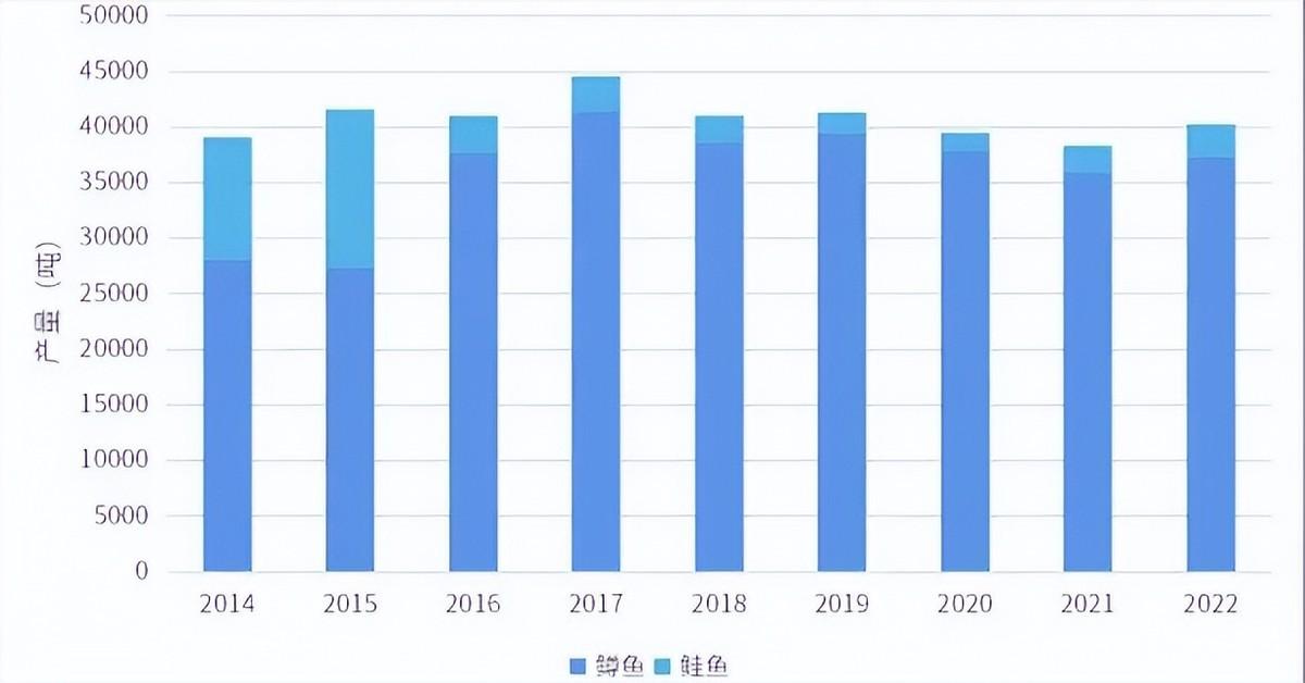 根据中国水产流通与加工协会调研,2023年,国产三文鱼已经达到4.5万吨,相比2022年增加了5000吨。