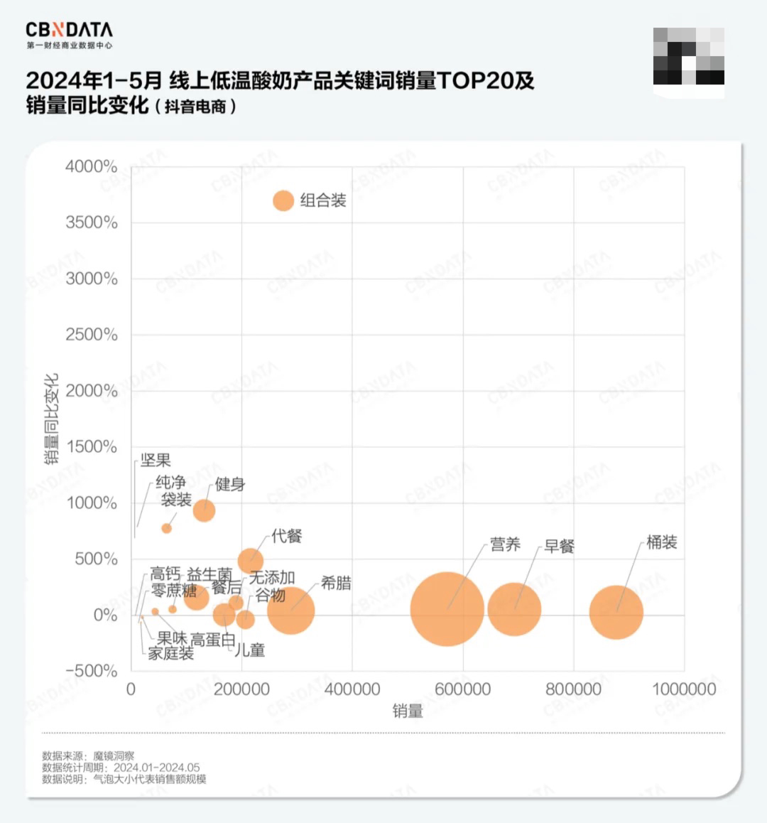 CBNData梳理了2024年1-5月淘系和抖音电商低温酸奶产品关键词销量表现,整体而言,健康仍为大势,细分来看,口味、口感、包装规格、功能功效和消费场景等维度都呈现出不同的具体趋势。