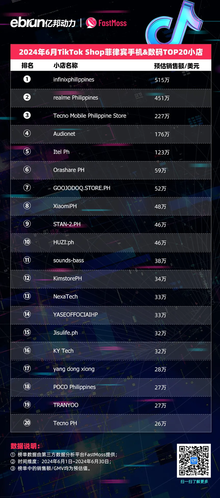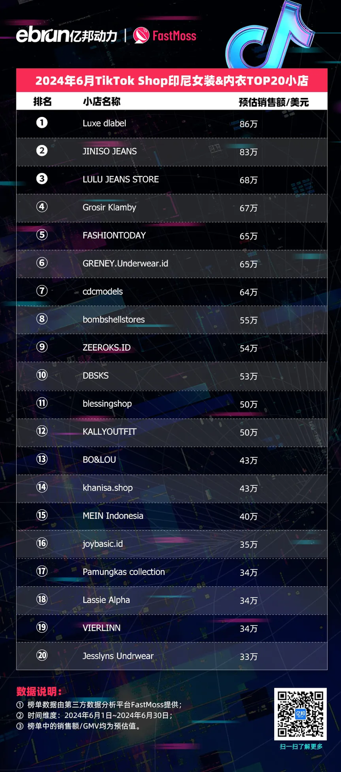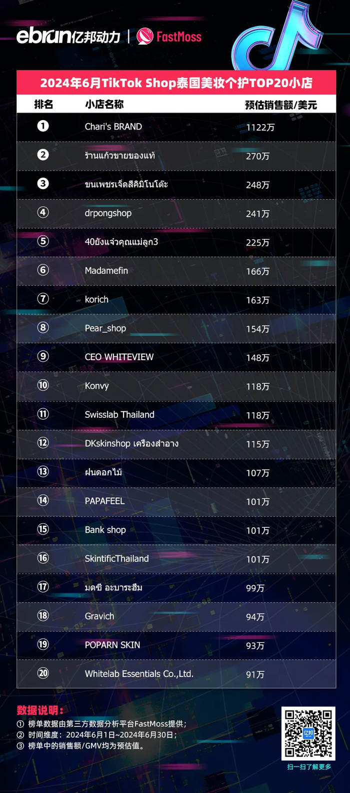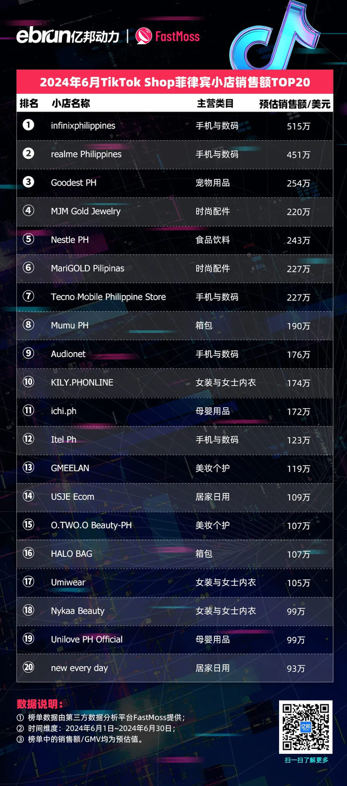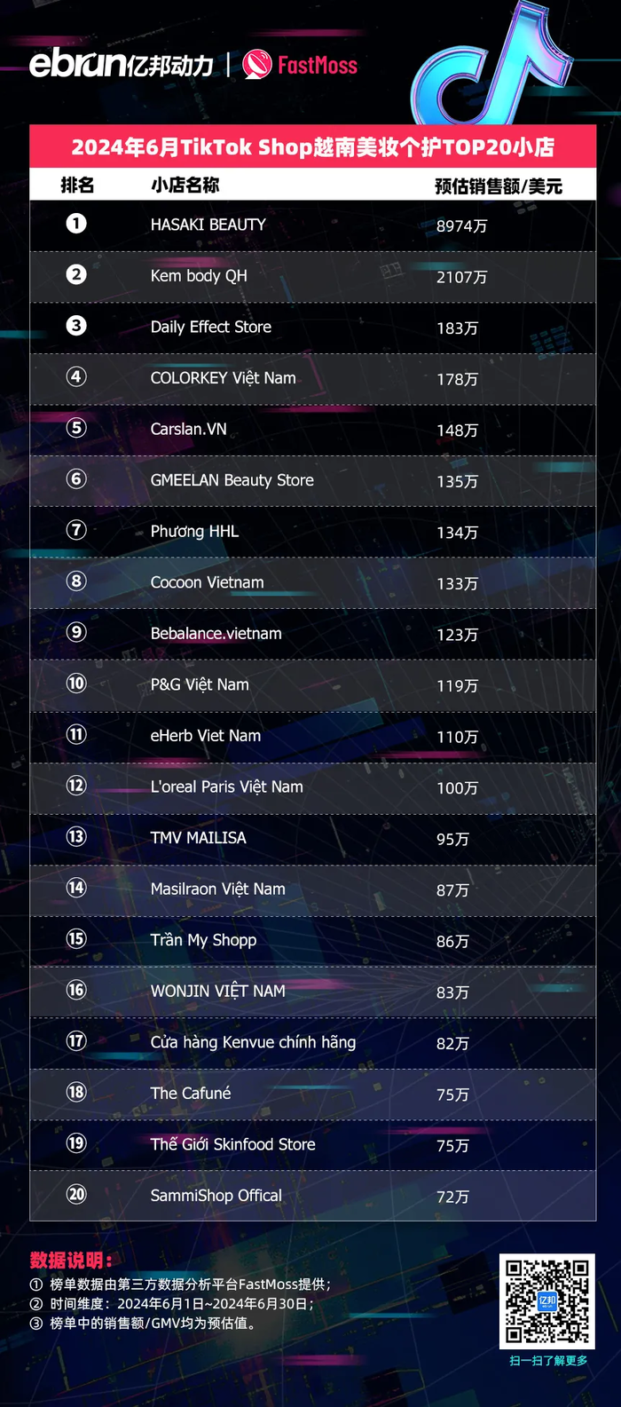 数据说明:榜单数据由TikTok第三方数据智能分析平台FastMoss提供,统计时间为2024年6月1日-6月30日,非官方数据,且销售额为预估值,或与实际情况有部分出入,敬请谅解。