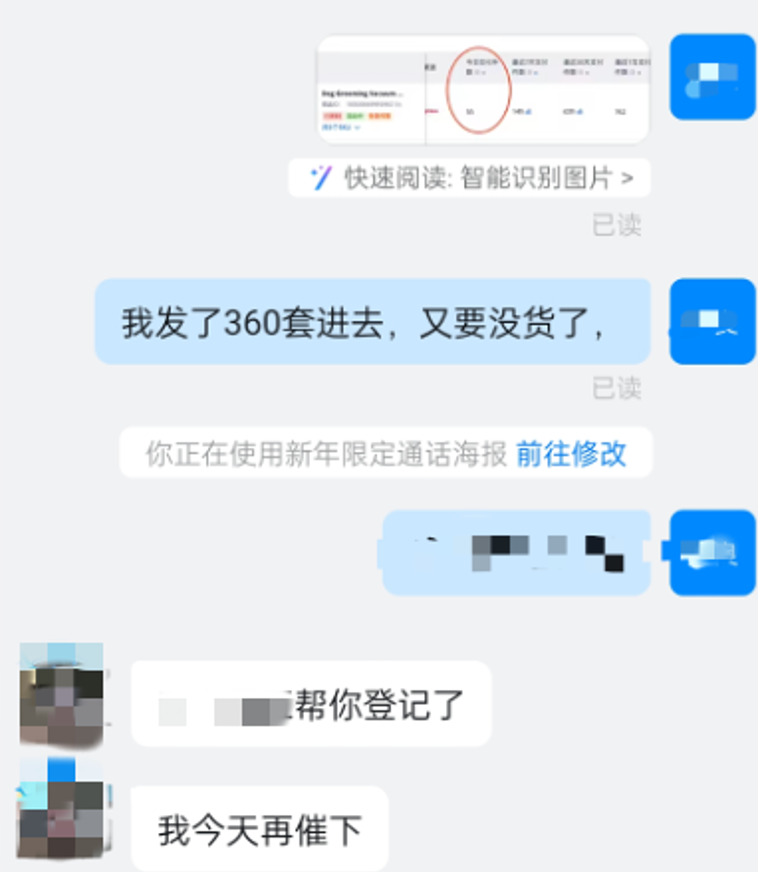 图:整个6月“补货”都是周先生和小二沟通最多的主题
