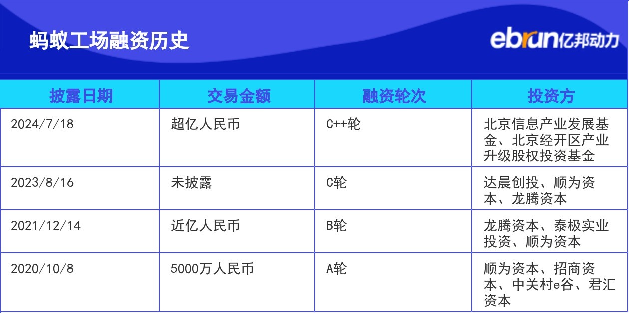 蚂蚁工场完成过亿元C++轮融资,投资方为北京信息产业发展基金和北京经开区产业升级股权投资基金。