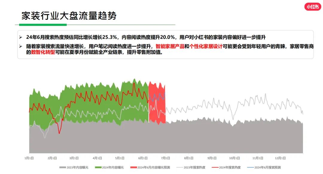 从搜索流量看,我们可以知道下阶段小红书家居家装行业的消费趋势,用户对小红书的家装内容偏好进一步提升。