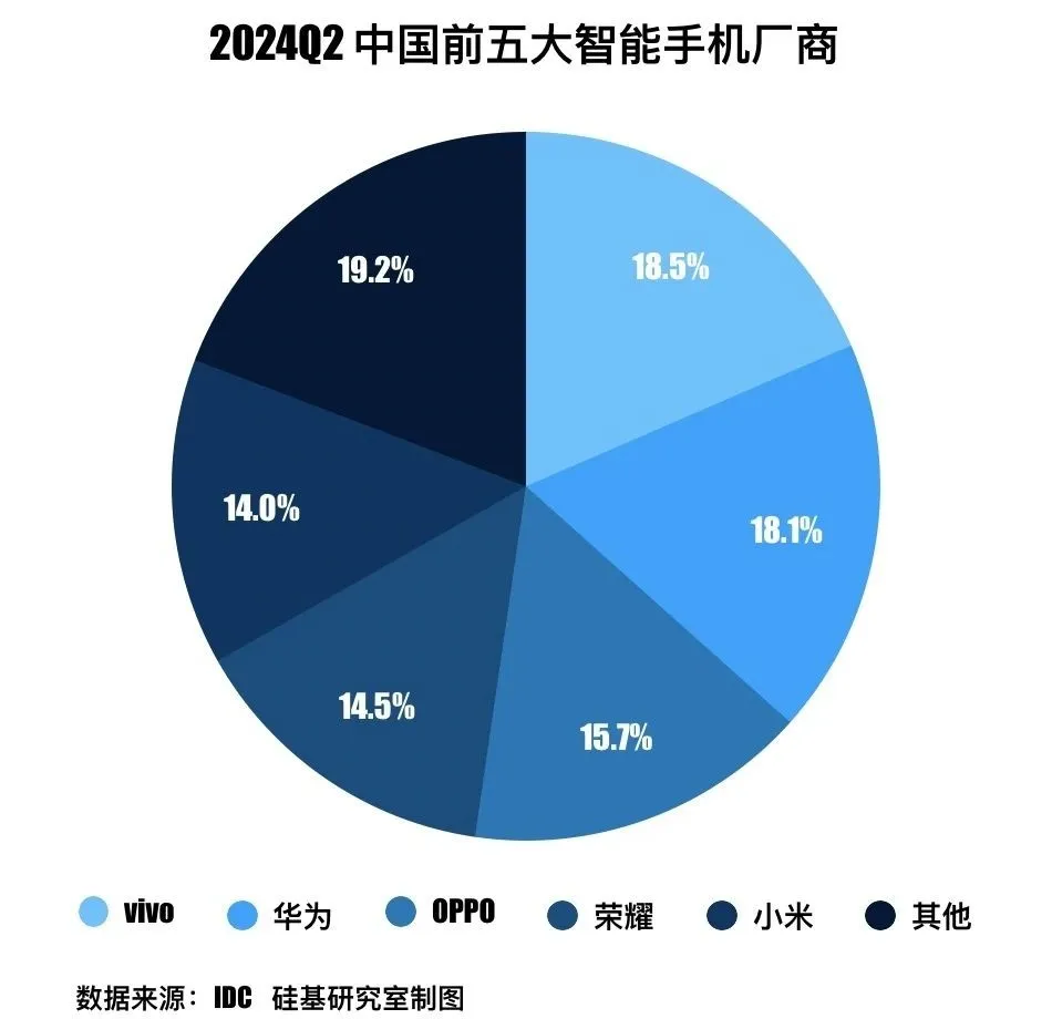 但这些好消息的B面是,苹果在中国市场的高端份额正被国产厂商进一步蚕食。据机构IDC近期发布的数据,2024年第二季度,苹果在中国智能手机出货量排名中跌出前五名,成为了榜单中的「others」,这也是近五年来,苹果首次未进入前五阵营。此前知名苹果分析师郭明錤也对苹果在中国市场的未来销量表示了悲观,这主要是因为华为的归来以及折叠手机正逐步成为中国市场高端用户的首选。