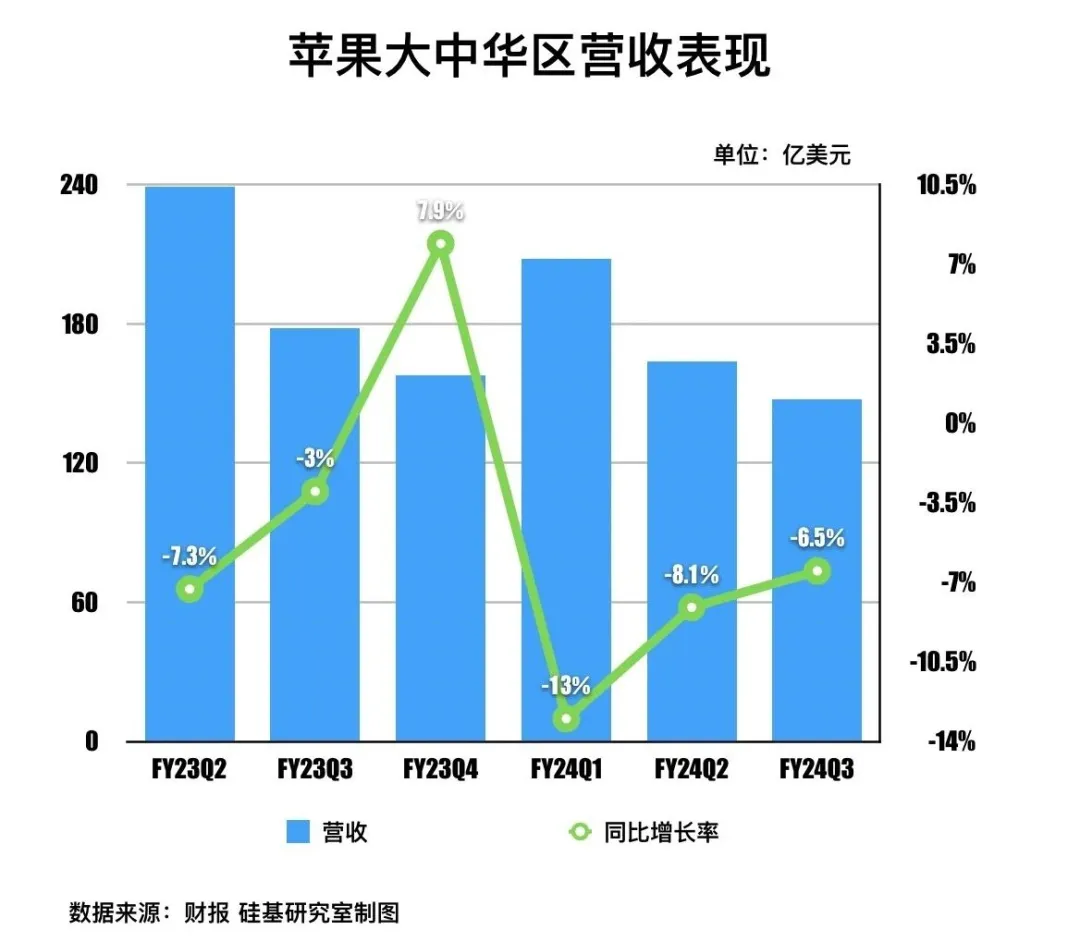 苹果在大中华区营收降幅改善主要得益于两点:一是更激进的降价策略。据「硅基研究室」观察,从今年年初至618期间,苹果均针对中国市场进行了大手笔的降价促销,在今年618电商平台的「低价竞争」中,iPhone 15系列的降价幅度甚至高达2500元。二是接iPad系列等新产品迭代,拉动销售。今年5月,iPad系列断更一年多后,苹果推出了最新款iPad Pro,库克在电话会上也表示,iPad在大中华区已恢复增长。