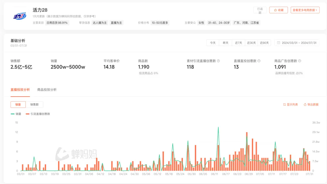 蝉妈妈·创意-活力28投放分析