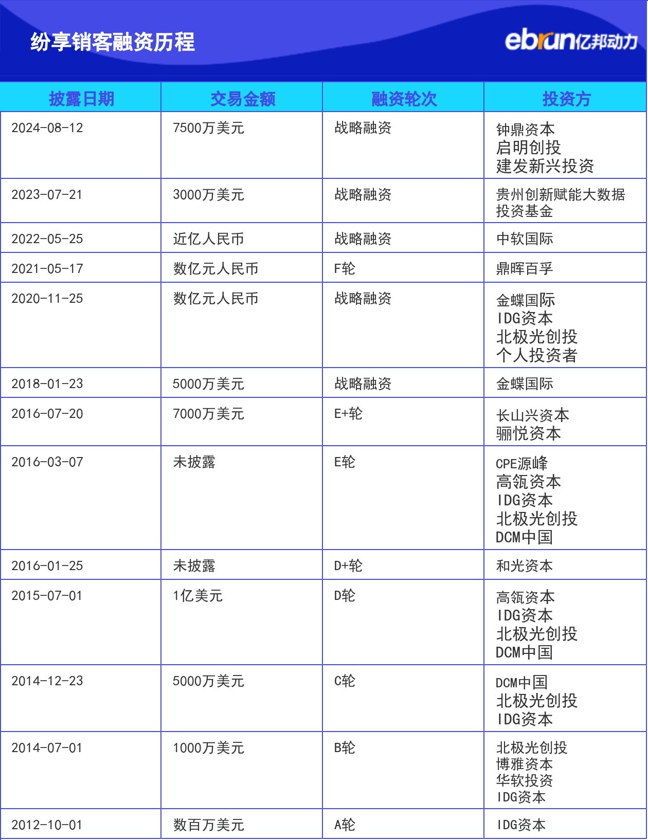 | 2023-07-21 | 3000万美元 | 战略融资 | 贵州创新赋能大数据投资基金 |